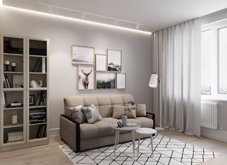 Спинка, выполненная в обивочной ткани, позволяет ставить диван в центре комнаты и зонировать пространство.