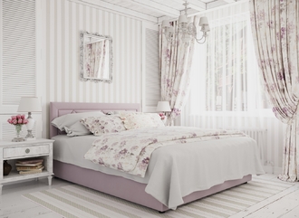 Фактура обивочного материала подбирается дизайнерами с учетом технологических и стилевых особенностей кровати.