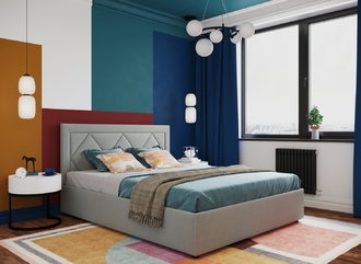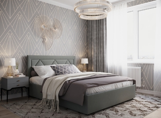 Фактура обивочного материала подбирается дизайнерами с учетом технологических и стилевых особенностей кровати.