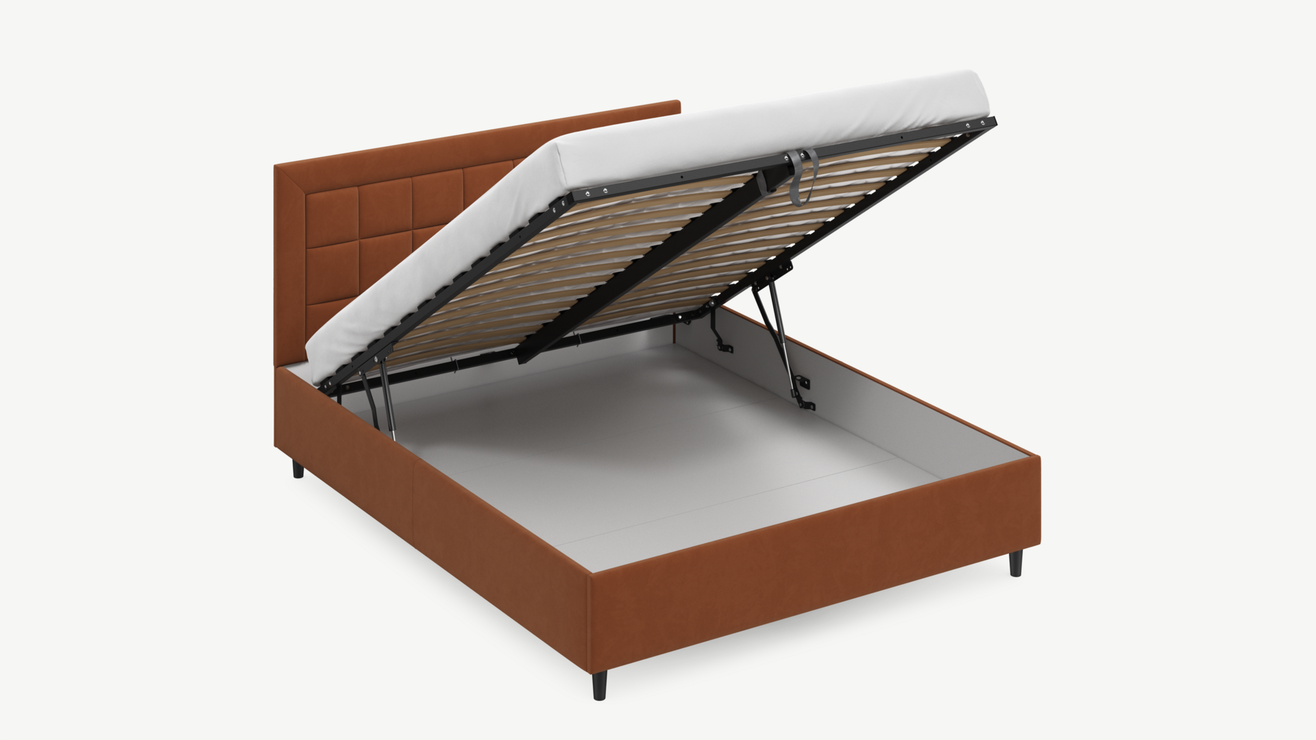 • Скрытая под основанием вместительная емкость без внутренних перегородок позволяет использовать всю площадь подкроватного пространства для хранения вещей.