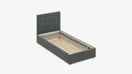 Изголовье декорировано рельефным рисунком стежки в крупный квадрат, получившим особую фактуру за счет глубины шва.