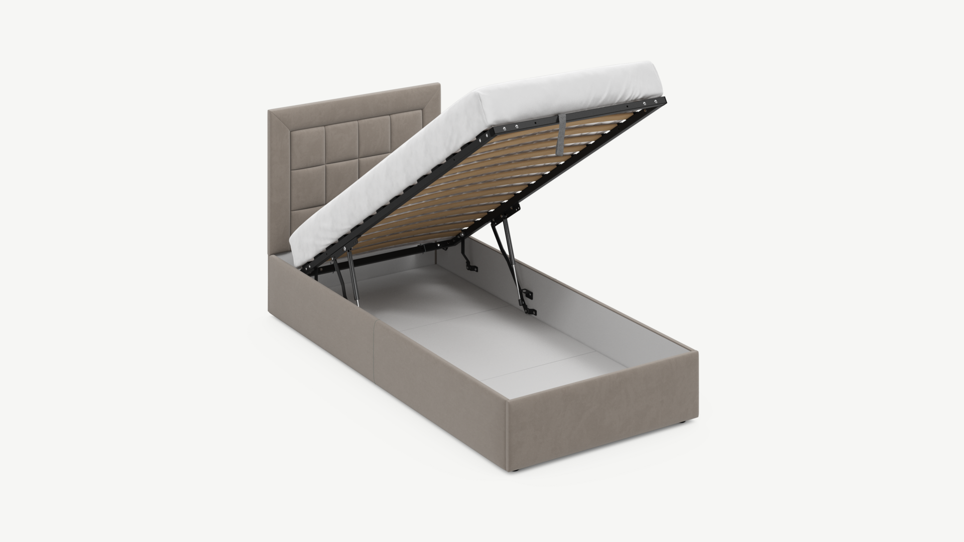 Регулируемый подъемный механизм с газовыми амортизаторами позволяет плавно и бесшумно поднимать и опускать спальное место.