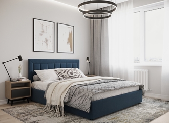 Стежка помещена в центр изголовья и обрамлена, словно картина. Объемные царги становятся гармоничным дополнением образа и завершают цельную фигуру кровати.