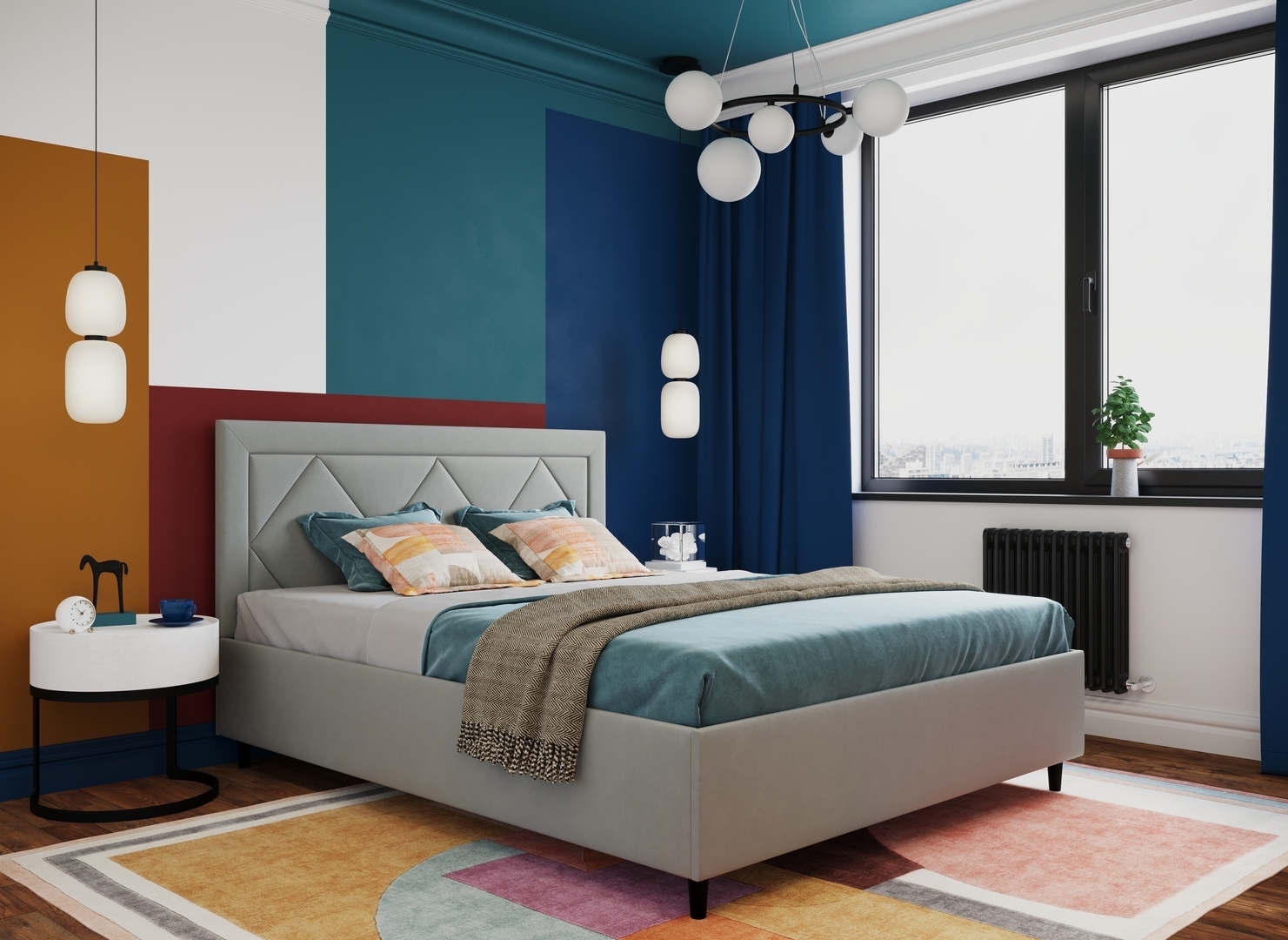 Создать гармоничный интерьер и завершить образ спальни помогут дополнительные аксессуары, например: тумбы, банкетки, подушки.