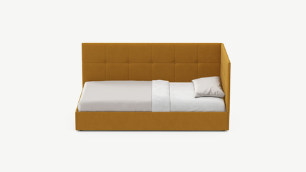 Угловая односпальная кровать MOON FAMILY 1261 с мягкой спинкой и изголовьем создаст в Вашей спальне ощущение уюта. Крупная квадратная стежка привносит в интерьер графических акцентов, а вставка из пуговиц наполняет пространство ощущением домашнего тепла.