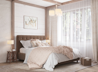 Оформите образ кровати, выбирая обивочный материал, который подчеркнет звучание Вашей спальни и отразит Ваш вкус. Обратите внимание на однотонный гладкий велюр, который усиливает объемную фактуру стежки.