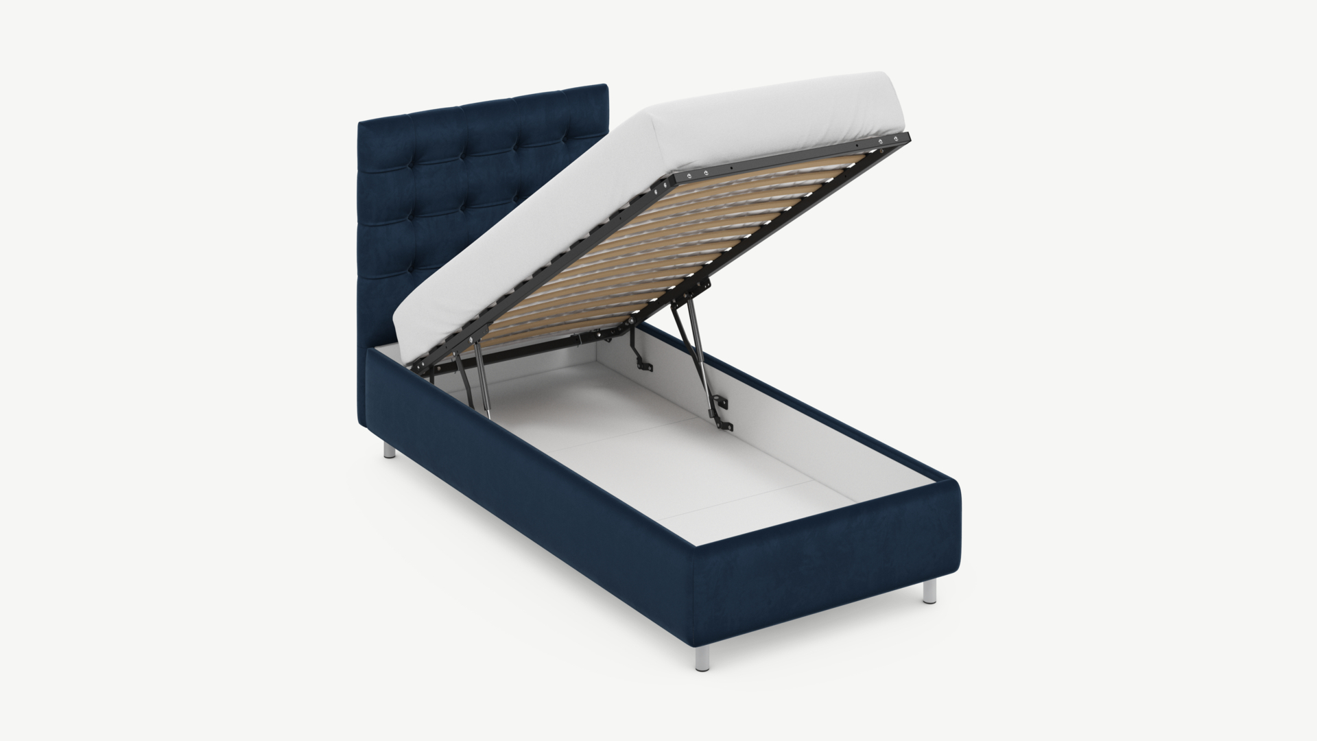 • Скрытая под основанием вместительная емкость без внутренних перегородок позволяет использовать всю площадь подкроватного пространства для хранения вещей.