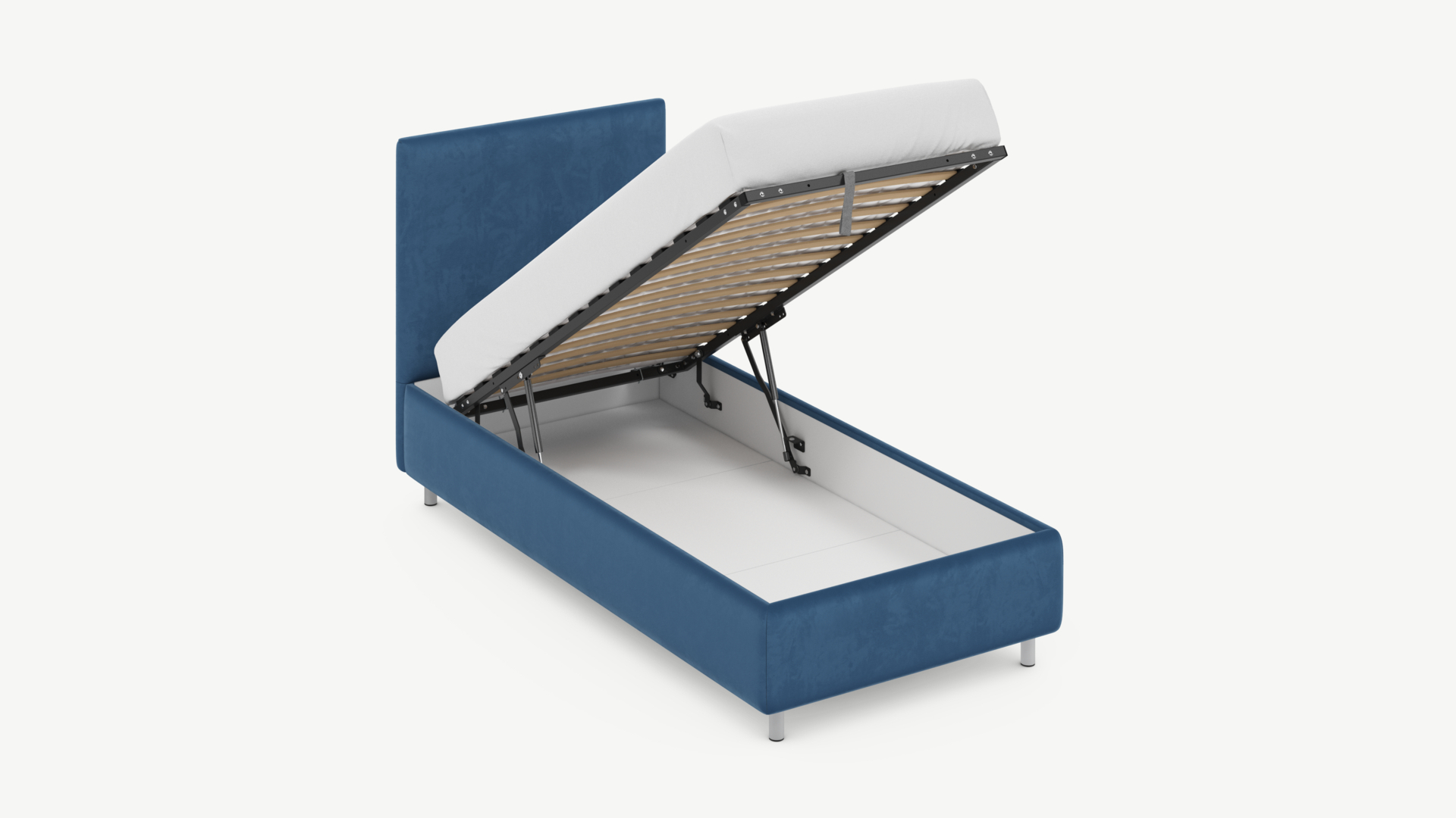 • Скрытая под основанием вместительная емкость без внутренних перегородок позволяет использовать всю площадь подкроватного пространства для хранения вещей.